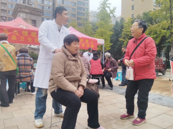 当天上午,武陟县龙泉街道懿品阁小区南广场,一场别开生面、丰富多样的“送健康进社区”义诊活动正在开展,该小区150余名老年人乐享健康大“餐”。据河南省合家安物业有限公司武陟县懿品阁小区服务中心工作人员冯婷婷介绍,该小区常住人口近4000人,其中有500多名老人,外出就医很不方便。随着天气逐渐转凉,老年人的各类健康问题更为凸显。为让老年业主享受到便捷、专业、暖心的健康关怀,龙泉街道东马曲社区、龙泉街道社区卫生服务中心和小区物业服务中心联合举办了主题为“九九情暖银龄 健康守护老人”的义诊活动,为和谐、文明、欢乐、健康的社区建设注入新动能、新活力。