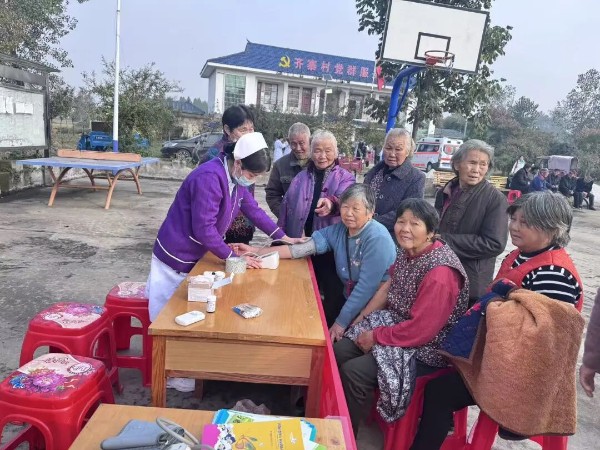 仪式结束,现场迅速热闹起来。息县中心医院医护人员摆开设备,免费为老人量血压、测血糖,耐心解答健康疑问;志愿者则将米面油、棉衣等爱心物资分发到老人手中,不忘叮嘱保暖。与此同时,参与活动的单位与爱心企业代表带着慰问物资,走进村里孤寡老人家中,每到一户都坐下拉家常,询问饮食、就医情况,把节日问候与社会温暖送到老人心坎里。