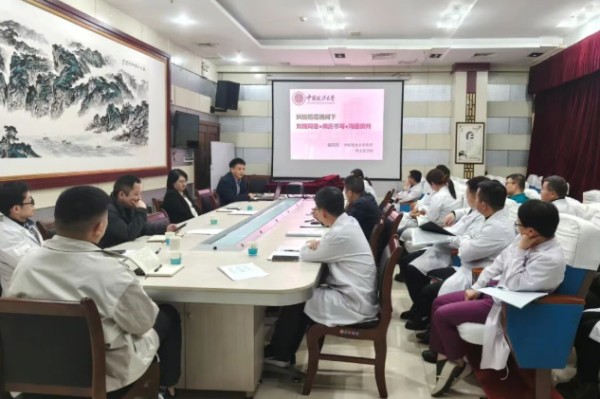 会上,医务科副科长张茜就河南省卫生健康委转发的《关于进一步强化医疗质量和临床检验检测管理若干措施的通知》进行解读。医务科周鹏、吴仲康分别讲解医疗总值班制度及2025年9月业务分析报表。最后闫丙川以“爱院、守法、病历、上报、沟通”为主题讲解了目前医患沟通问题。
