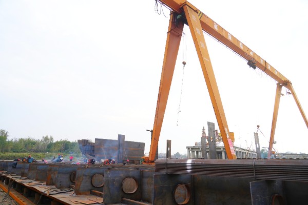 淮河岸畔久违的连阴天气转晴,淮滨县造船园区,长长的造船平台一字排开,船厂抓住这金秋季节难得的造船有利时机,全力推进生产进度。一时间,各造船平台是焊花飞溅,叮当声不断,工人们加班加点忙个不停赶进度,造船进度一天一变样,整个造船业生产形势突飞猛进。