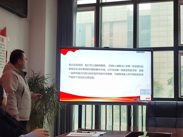 讲堂上,主讲人穆彦霖立足残联日常工作需求,结合生动案例,对《中华人民共和国残疾人保障法》中有关教育、就业社会保障、无障碍设施环境等重要条款进行了深入解读。