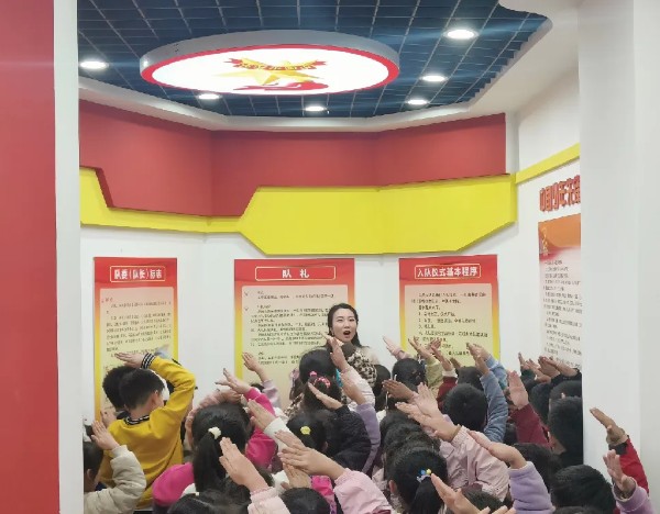 怀着崇敬的心情,同学们走进了庄严的少先队主题教育馆。在这里了解了红领巾的深刻含义,激励着他们在星星火炬的指引下,立志向、修品行、练本领!