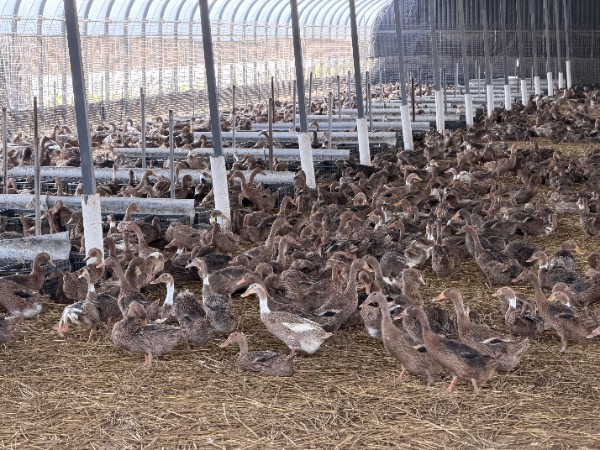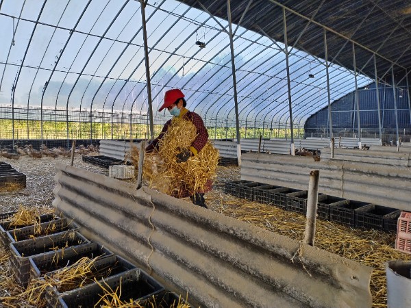 2024年,村“两委”在确定发展蛋鸭养殖业后,经多方调研考察,最终确定了驻马店汝南县的“蛋鸭旱养”技术——鸭子全程在标准化大棚里养殖,不接触污水,吃得少、产蛋多、疫病少。为推动项目落地,叶桥村积极争取上级政策支持,多方筹措资金,迅速启动蛋鸭旱养示范园建设,实现了当年谋划、当年建成、当年见效。目前,园区一期、二期共占地50亩,建有标准化养殖大棚7座,养殖蛋鸭共3万余只,日产鸭蛋约5000斤,预计年收入至少120万元。项目运营平稳,经济效益逐步显现,已吸纳12名本村村民长期务工,人均月收入达3000元以上,有效带动了群众在家门口就业增收。