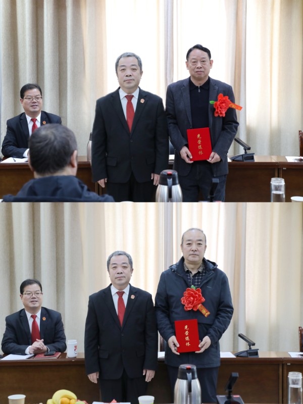 参观结束后,新野县人民法院召开了干警荣誉退休仪式暨老干部重阳节座谈会,院党组成员、副院长魏少永通报了2024年重阳节以来退休人员和新野县人民法院2024年以来的工作情况,院党组副书记、副院长王永清为2024年重阳节以来退休人员颁发荣誉退休证。证书颁发后,退休干部代表宋俊波、王利建,中层代表刑庭副庭长赵钦分别作交流发言。