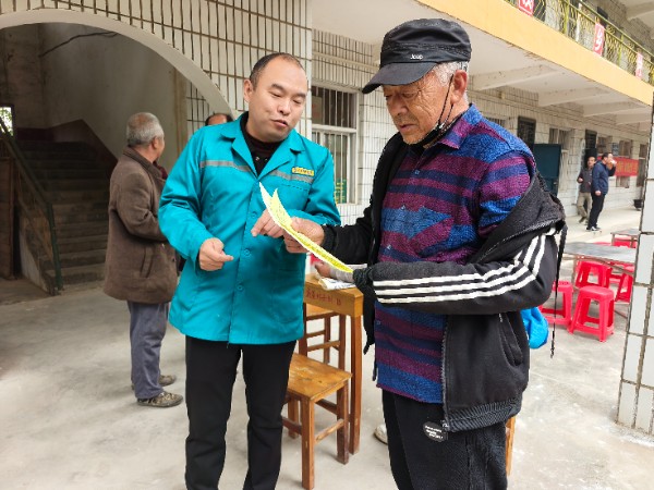 活动现场,贴心服务无处不在。包户领导主动化身“服务员”,走村入户慰问行动不便的老人。他们坐在老人家中,与老人亲切交谈,详细询问身体状况和生活需求,耐心倾听老人的心声与诉求,并热情邀请老人们前往村部共赴“重阳家宴”,让每一位老人都不被遗忘,切实感受到党组织的温暖关怀。与此同时,村医在村部内为老人们提供免费健康服务,细致地为老人们测量血压,针对不同老人的身体状况解答健康疑问,还发放了脑卒中预防、防癌抗癌、肺结核防治等健康教育宣传资料,用专业知识为老人们的健康保驾护航。