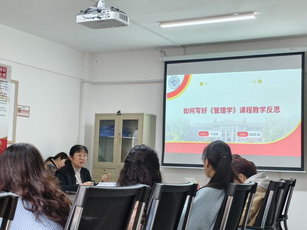 本次培训会聚焦“教学反思赋能课堂提质”核心主题,牛艳莉精心筹备并制作专题课件,以自身主讲的《管理学》课程为实践样本,展开沉浸式教学反思示范。她强调,教学反思是教师专业成长的“必经之路”,更是连接教学实践与质量提升的“关键桥梁”,尤其对新入职教师而言,常态化的教学反思能快速助力其找准教学定位、补齐能力短板,实现从“站稳讲台”到“站好讲台”的跨越。