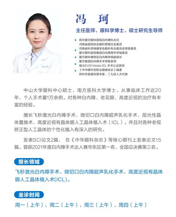 郑州爱尔眼科医院白内障与老视专科主任 冯珂为他们进行了全面的术前评估,并制定了周密且个性化的手术方案。