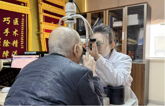 与一周前不同的是,此时老先生不再需要凭借模糊的光影去判断面前的事物,而是能清晰地看到医护人员脸上亲切的微笑。