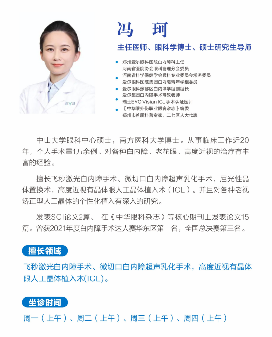 面对危局,朱老师和家人并未放弃,在不断咨询于尝试中,找到了郑州爱尔眼科医院白内障科与老视专科主任冯珂。