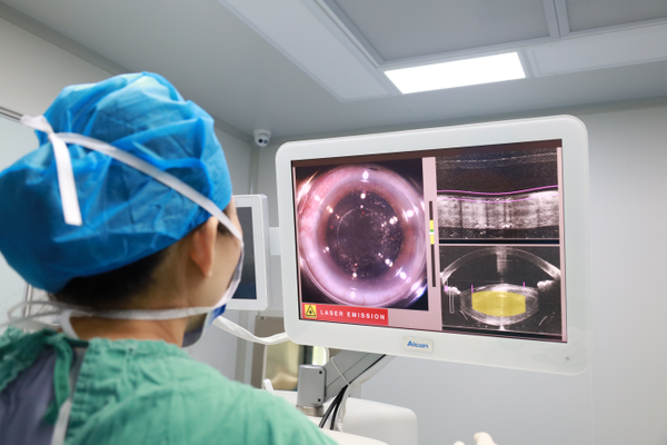 面对朱老师复杂的情况,冯珂主任决定为朱老师实施“飞秒激光辅助白内障晶体置换”(俗称“飞白”技术)的手术方案。