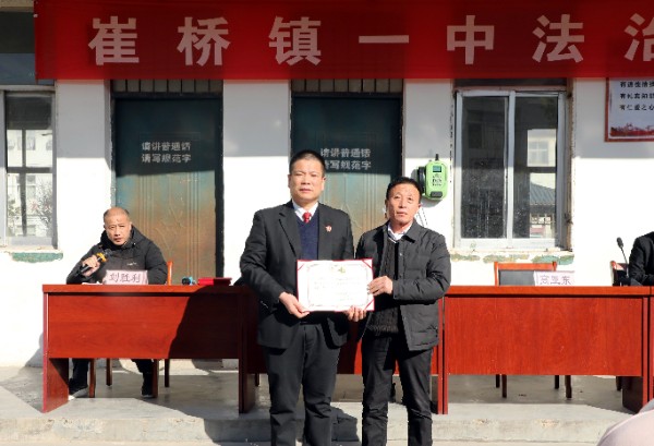 活动中,崔桥镇第一初级中学正式聘请县人民法院刑事审判庭庭长高亚东、法官张素敏担任该校法治副校长,携手共建平安法治校园。