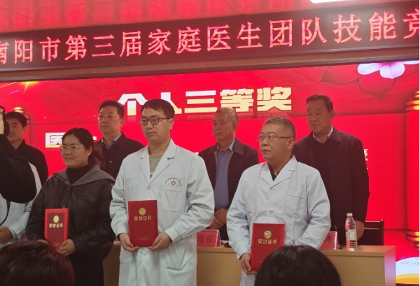 10月29日,南阳市第三届家庭医生团队技能竞赛在南阳市第二人民医院圆满落幕。本次竞赛以“练医防融合硬功,做居民健康朋友”为主题,汇聚全市各县(市、区)精锐家庭医生团队同台竞技。邓州市代表队不负众望,斩获团队三等奖,队员曾宏迪、李轲、吴凉分别荣膺护理专业个人二等奖及医疗、公卫专业个人三等奖。这份亮眼成绩单的背后,离不开邓州市湍河社区卫生服务中心(邓州市骨伤医院)的全程鼎力支持——不仅选派骨干担任竞赛考官保障赛事公平,更发挥公卫服务优势为参赛团队保驾护航,充分彰显了基层卫生标杆单位的责任与担当。