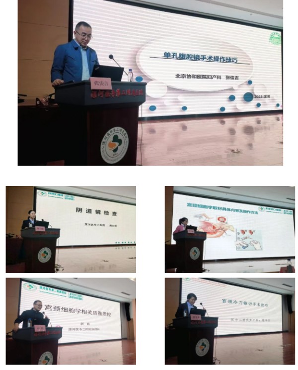本次授课聚焦“防、筛、诊、治”全流程进行。北京协和医院张俊吉教授以《单孔腹腔镜在妇科的应用》为题,漯河医专二附院妇产科副主任医师熊向前分别以《阴道镜检查技术及操作》《LEEP操作与技巧》为题,主治医师李雪丽以《妇科检查与初筛取材》为题,妇产科主任何宏舸以《阴道镜检查质量控制规范》为题,病理科主任赵路以《宫颈细胞学的质量控制》为题,妇产科副主任医生张华杰以《宫颈冷刀锥切手术技巧及实操》为题进行授课,构建了完整的技能提升体系,实现了从基础到精深的全面覆盖。