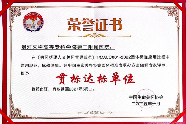 此次成功获评国家级贯标达标单位,是漯河医专二附院在人文护理建设道路上的一项重要荣誉,更是迈向更高标准、追求更优服务的新起点。