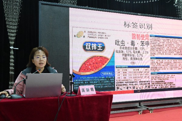 高新菊博士以《小麦种子处理与杂草防治》为题,深入浅出地讲解了小麦种子处理、杂草防治、农药科学使用等关键技术问题。她亲自示范,教农户如何辨别小麦拌种剂、查“三证”、进行标签识别,以及如何科学、精准、标准化、轻简化地对小麦病害、草害进行防控。同时,针对小麦生产中的植保风险,她强调了采用“杀菌剂+杀虫剂+生长调节剂”复合包衣的种子处理技术,重点防控茎基腐病、地下害虫等土传、种传病虫害。此外,还对纹枯病的早期监测预警以及冬季潜在冻害的应急补救措施进行了详细部署,构建了从播种到收获的全链条防护屏障。