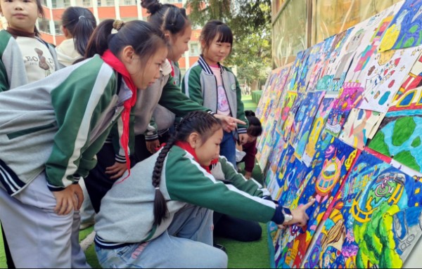 紧邻的科学幻想绘画展示区,则是一片色彩斑斓的天地。上百余幅作品整齐悬挂,孩子们以画笔为媒,将对科学的理解与憧憬尽情挥洒。有的作品描绘了未来太空城的生活场景,飞行器穿梭在星球之间;有的以微观世界为主题,生动还原了细胞结构与昆虫形态。“我画的是‘海底新能源工厂’,希望未来能利用海洋资源解决能源问题。”二年级学生赵倬伊指着自己的作品说,为了画好这幅画,她查阅了潮汐能、波浪能的相关资料,现在对新能源有了更深入的了解。驻足观赏的家长纷纷称赞:“这些画不仅好看,还藏着科学知识,太有意义了!”