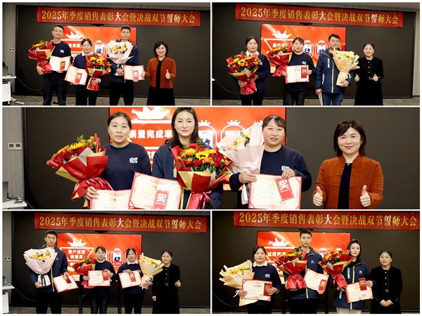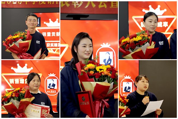 表彰环节成为大会高潮,本次表彰特别设置了多项奖项,全面覆盖销售工作各关键维度。吴会华董事长、吴丽总监为获奖个人和团队颁奖,获奖代表在发言中纷纷表示,感谢公司提供的成长平台与团队的鼎力支持,未来将以更优异的成绩回报企业,为品牌升级贡献力量。吴会华董事长在总结讲话中勉励全体员工,以获奖者为标杆,掀起“比学赶超”热潮,共同书写四季度发展新篇章。