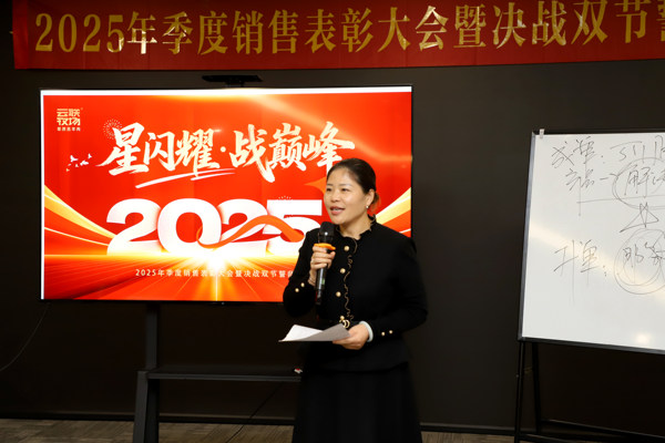 销售总监吴丽在动员讲话中表示,三季度的优异成绩是团队协作的成果,更为四季度攻坚奠定了坚实基础。“今天的表彰不仅是对先进的嘉奖,更是对全体员工的激励。”她号召全体人员以标杆为榜样,拿出"拧成一股绳、火力全开干"的斗志,务实攻坚、奋勇争先,确保完成双节销售目标。