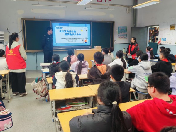 11月6日,平顶山高新区皇台街道高阳社区组织网格员与辖区民警组建专项反诈宣传小队,走进高新一小开展以“警网携手护成长”为主题的反诈宣传活动,为50余名孩子们送上一堂生动有趣、干货满满的反诈安全课。