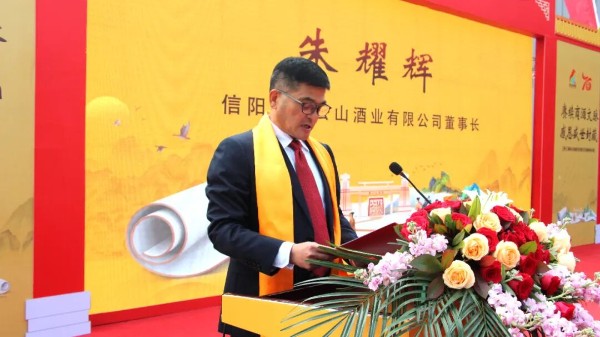 鸡公山酒业董事长朱耀辉在致辞中表示:从第一届到第十二届,变的是一年年的光阴,不变的是我们对三千年商酒文脉的敬畏与遵循。今天,即将封存的,是“历久弥新”的承诺,更是鸡公山酒业对商代古酒文化核心技艺的忠诚守护与血脉赓续。“赓续”不是简单的重复,而是在坚守本味基础上的不断创新。因此,我们以现代科技赋能传统工艺,酿造出了“毛尖茶酒”这一中国白酒的第十四种香型。在未来,“毛尖茶酒”也必将享誉全国、走向世界,绽放出超越期待的幽雅醇香。