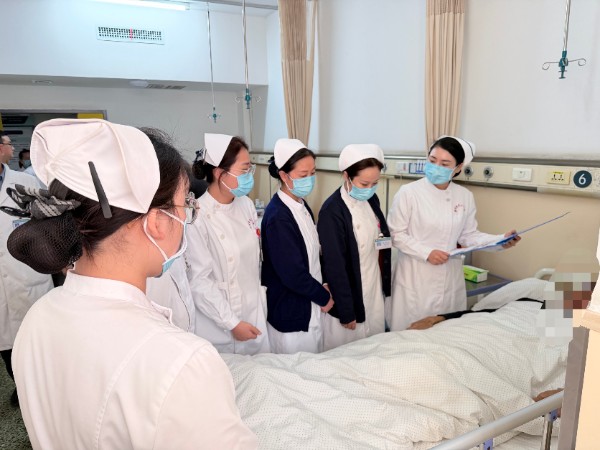 责任护士首先就该病例的病情、既往史、现阶段治疗方案及已实施的护理措施进行汇报。随后,各位老师深入病房,对患者进行床边查体,重点评估患者的意识状态、颅内压情况、眼部伤口及生命体征。