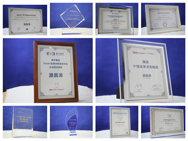 ▲近年来,游昌涛院长领衔的屈光近视手术科室及其个人部分荣誉