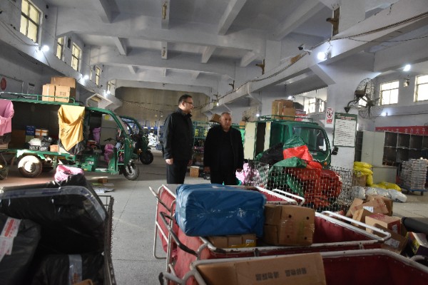 在邮件处理中心,郝总一行和一线员工亲切交谈,详细了解“双十一”旺季生产运营情况及员工生产生活情况等,对奋战在一线辛勤坚守的员工们表示亲切慰问,鼓励大家进一步发扬爱岗敬业、不辞辛苦的精神,积极奋战“双十一”,确保邮件“不延误、不积压”,全力以赴彰显“国家队”风采,践行“人民邮政为人民”的服务宗旨,为客户提供优质、安全、便捷、高效的寄递服务。同时,叮嘱大家务必绷紧安全弦,严格遵守交通规则,做好自身防护,合理安排作息,劳逸结合,在保障服务质量的同时保重身体。同时强调,县公司各部门要全力做好后勤支撑保障工作,精准调配人力物力资源,及时解决一线员工的实际困难,为大家全身心投入旺季攻坚提供坚实后盾。