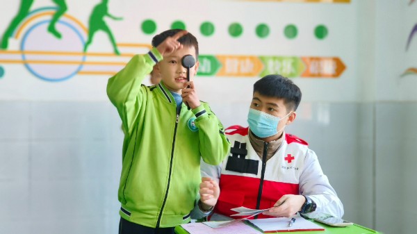 同时,由驻马店红十字会志愿者联合驻马店市第一人民医院医院及相关医疗专家组成专业团队,为学生们送上全方位健康检查 “大礼包”。围绕眼科检查、口腔健康、生长发育评估、身高测量、体重检测五项核心项目,医护团队分工明确、操作规范。