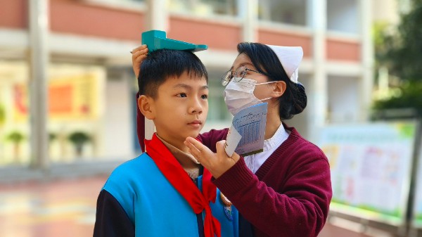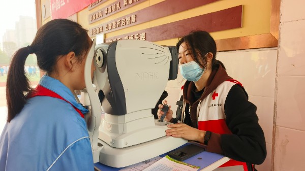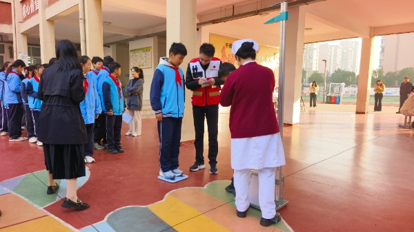 健康体检现场暖意融融,驻马店市红十字会、经济开发区红十字会的志愿者们协同驻马店市中心医院等专业医疗团队,为学生提供眼科检查、口腔健康筛查、生长发育评估、身高测量、体重检测五项精准服务。在眼科检查专区,医护人员手持专业设备细致排查视力异常、屈光不正等问题,一边检测一边讲解“20-20-20”护眼法则等实用技巧,提醒学生避免长时间使用电子产品;口腔检查台前,医生逐一对学生龋齿、牙龈健康状况进行评估,拿起模型现场示范巴氏刷牙法的标准动作,反复叮嘱“少吃甜食、早晚刷牙”的护牙要点;生长发育评估区域,医护人员认真记录每一位学生的身高体重数据,结合BMI指数为发育异常的学生提供个性化营养建议,指导家长通过合理膳食与科学运动助力孩子成长。整场体检秩序井然,医护人员的耐心细致让学生们倍感温暖,所有检测结果将形成专属健康档案,同步反馈给学校和家长,为后续健康干预提供科学依据。