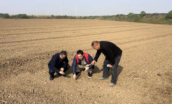 淇县大周农业专业合作社位于淇县西岗镇滞洪区,土壤粘重,犁粑后土壤多为颗粒状,几乎没有细土;特别是土壤中含水量较高时,整地后基本上都是大土块,很难实现一播全苗,也无法进行播前造墒。科技特派员团队走进田间,仔细察看土壤墒情和整地质量,指出,“小麦要高产,七分在于种,三分在于管”,而精细整地是保证苗全、苗齐、苗壮的第一步。并向社员们强调:一要深耕打破犁底层,深度达到25厘米以上,确保根系下扎;二要耙平耙细,消除明暗坷垃,做到上虚下实,为种子萌发创造良好的土壤环境;三要根据当前土壤墒情,指导合作社适时播种,确保一播全苗。