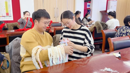 活动不仅让准妈妈掌握了基础编织技能,更通过音乐互动、手部保健与亲子协作,有效缓解了孕期焦虑,增进了家庭支持联结。参与者纷纷表示,“围巾是给宝宝的第一份温暖礼物”“和姐妹们一起动手比刷手机开心多了”“手指操让手肿缓解不少,很实用”。