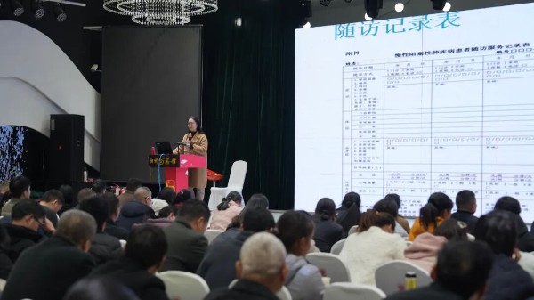 来自县域内的专家也贡献了宝贵的实践经验。唐河县人民医院呼吸与危重症医学科主任马菊,详细讲解了慢性阻塞性肺疾病(慢阻肺)的临床知识,包括疾病的分型、典型临床表现、规范治疗方案、日常饮食指导原则以及该病对个人、家庭和社会带来的严重危害,增强了基层人员对呼吸系统慢病的早期识别与健康管理能力。