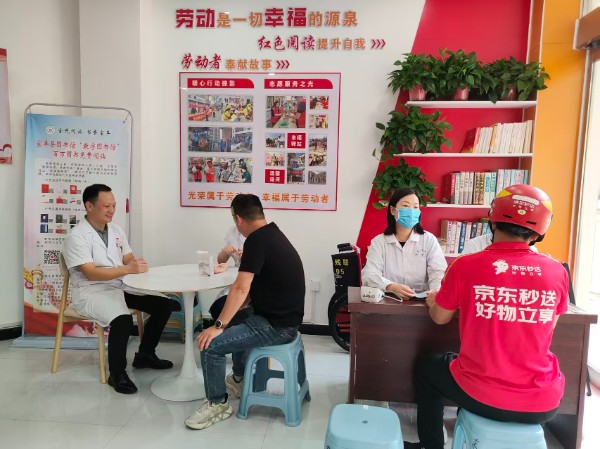 父城街道东街社区的暖新驿站,是这场转变的“起点”,更是县域服务资源的“聚合枢纽”。从最初配备空调、饮水机、应急药箱等物品,精准破解骑手“喝水难、充电难、歇脚难”的现实痛点,到逐步嵌入多元服务,与县人社局联合设置用工信息服务角,与县司法局协调组建专业法律服务团定期进驻等,始终以新就业群体需求为导向持续升级。更关键的是,暖新驿站还搭建起“社区联动+部门响应”的双重桥梁,社区通过驿站微信群“随手拍”、网格专属联系方式、站内“许愿树”等渠道倾听诉求。截至目前,驿站通过人脸录入系统累计录入新就业群体180余人,服务4000余人次,成为骑手们在城市里的“暖心港湾”。