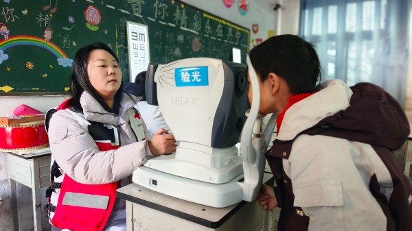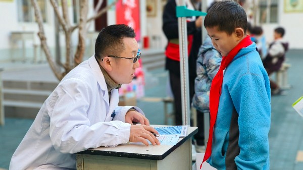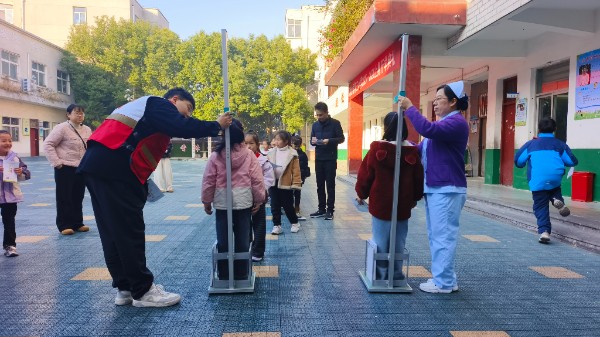 在健康体检现场,来自驻马店市中医院、驻马店尖峰眼科医院的专家团队分工明确,设置了视力检测、口腔检查、生长发育评估等多个专项检查区域。眼科专家使用专业验光仪器为孩子们细致检查视力,耐心讲解近视预防知识;口腔专家仔细查看牙齿健康状况,针对龋齿、牙周问题给出个性化护理建议;生长发育科专家则通过身高体重测量、生长曲线分析,为孩子们的营养与发育提供科学指导。专家们温柔的态度、专业的操作缓解了孩子们的紧张情绪,现场秩序井然。“医生阿姨说我的视力有点下降,以后我要少看电子产品,多做眼保健操。”刚完成视力检查的一位四年级学生说。