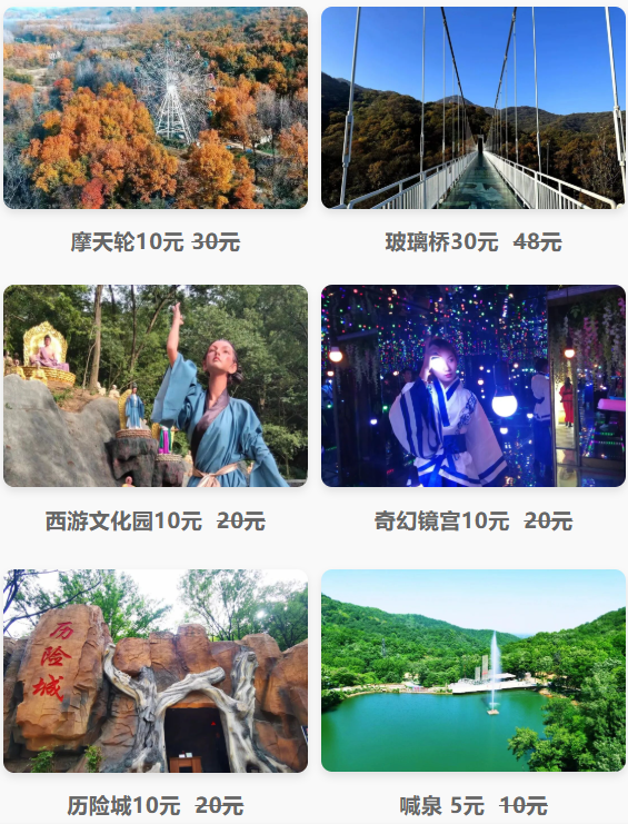 免票人群:所有游客(免票不含景区内其它经营性游乐项目)