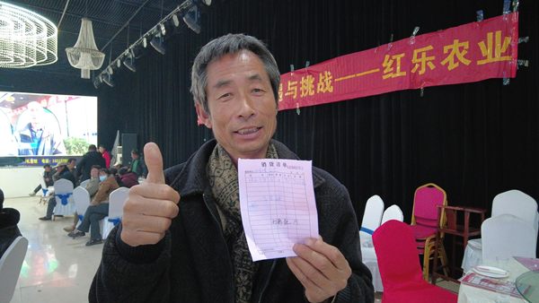 开封通许代理商马文生分享实地种植经验:“乐途5号亩产轻松过万斤,扣除成本,每亩地净赚一万五!”他透露,在红乐技术团队指导下,通许县朱砂镇及周边已种植超百亩乐途5号,亩产值超2.2万元,实打实的数据引发全场掌声。