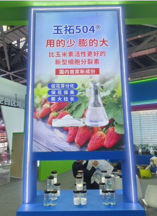 本次展会,河南通化院的核心原药产品——玉拓504®精彩亮相。作为国内首创新成分,其活性与效率均超越传统玉米素,以“用量少、膨果大”的卓越特性,高效实现促花、保果与膨大,为丰产增收提供更安全、更高效的新选择。
