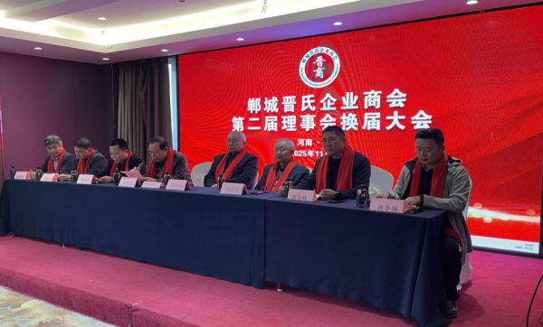 2025年11月23日,郸城晋氏企业商会第二届理事会换届大会在郑州市隆重举行。郸城县工商联相关领导,晋氏宗亲代表、商会会员企业负责人及兄弟商会嘉宾齐聚一堂,共同见证这一承前启后、继往开来的重要时刻,共商商会发展新蓝图。