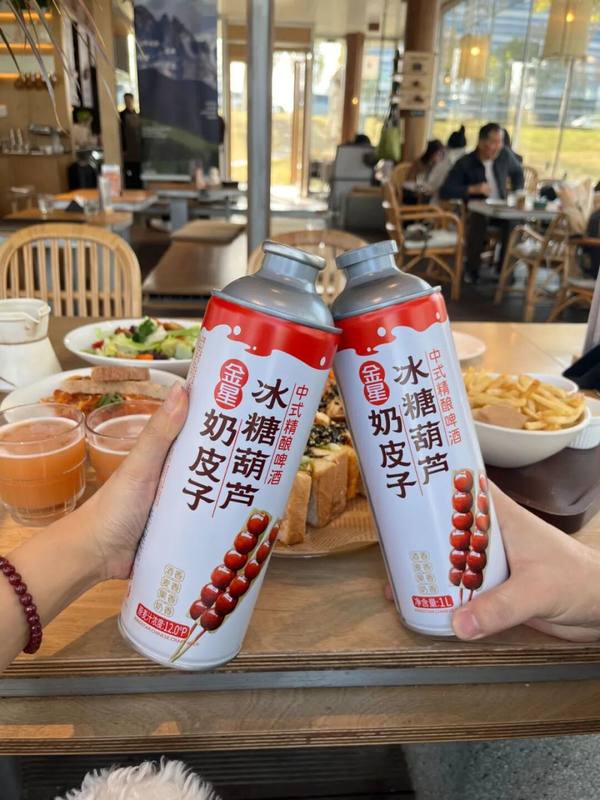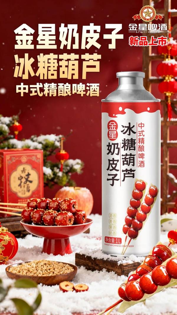 金星啤酒此次新品,无疑是一场极具创意的大胆味觉实验。它独具匠心地选取了两种极具中国特色的传统小吃——冰糖葫芦与奶皮子,作为这款精酿啤酒的灵感源泉。