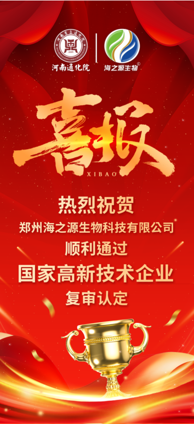 再获殊荣 郑州海之源生物科技有限公司顺利通过国家高新技术企业复审认定