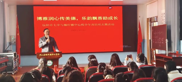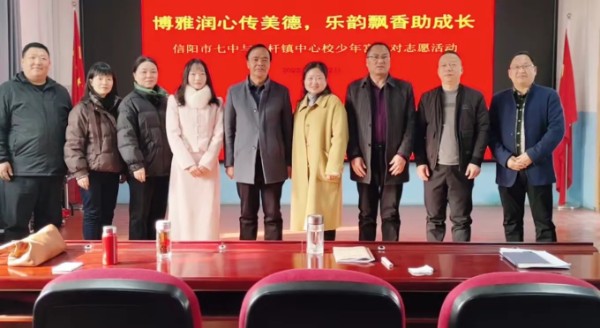 活动最后,楠杆镇中心学校党支部书记、校长董海军对此次结对帮扶活动予以肯定,“此次结对帮扶形式多样,内容丰富,信阳市七中是百年老校,也是全国文明单位,是信阳市的知名学校。我们楠杆镇中心学校有幸攀上了这样一个大亲戚、富亲戚,希望在以后工作当中信阳市七中能够对我们继续提供大力支持,我们一定不会辜负七中领导和同志们的帮助和期望。坚信我们楠杆镇中心学校和信阳市七中的友谊能够地久天长。”