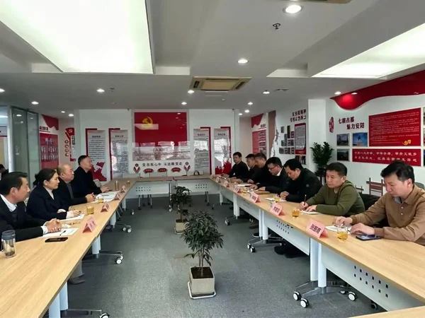 随后,郑州市舞钢商会一行赴河南省鹰城商会继续交流学习。鹰城商会常务副会长张友伦、朱志伟、副会长胡亚峰、值班秘书长姚荣荣等分别以“服务、联谊、维权、发展”为核心。并强调开放性和包容性,致力于为会员提供全方位服务基本理念。以平台赋能,分享了鹰城商会在会员服务创新、产业资源整合、异地商会联动等方面的宝贵经验,重点介绍了商会在助力民营经济高质量发展、参与乡村振兴等领域的责任担当。舞钢商会党支部书记陶春喜结合商会党建工作实践,分享了“红色研学强根基、党建引领促发展”的工作思路,介绍了商会组织党员代表赴兰考学习焦裕禄精神、以党建凝聚会员向心力的具体举措。