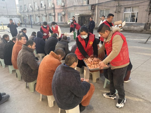 活动当天,县残疾人联合会志愿者队伍携带牛奶、鸡蛋、猪肉、水果、棉睡衣等生活物资首先抵达重度精神智力残疾人集中托养中心华光医院,考虑到服务对象的特殊性,志愿者在医护人员指导下,轻声细语地与集中托养人员交流,缓解他们的情绪,温和地为他们分发牛奶、鸡蛋等食品,让托养人员感受到温暖与尊重。