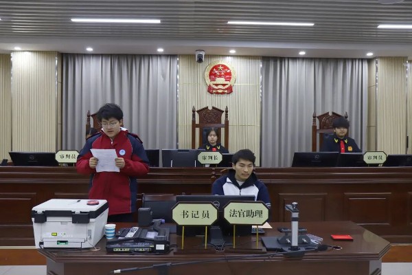 随后,活动的“重头戏”在法庭上演。法徽、法槌、法袍,每一件物品背后的象征与规范都被娓娓道来。当抽象的宪法条文与庄重的法庭布局产生关联,宪法的形象在同学们心中瞬间清晰起来。在干警的耐心指导下,同学们纷纷角色扮演,穿上法袍、坐上审判席,模拟起一场真实的庭审。从“原告”陈词到“被告”答辩,从举证质证到法庭辩论,环节一丝不苟。一位扮演“法官”的同学事后兴奋地说:“手握法槌的那一刻,责任感特别重,我真正感受到了法律的神圣和公正。”