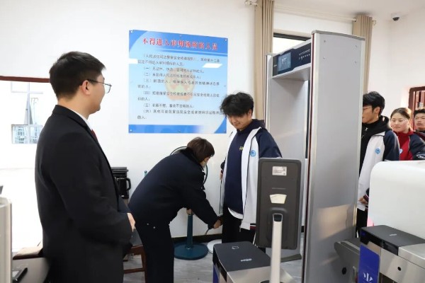 这天,师生代表们走进法院,开启了一场沉浸式法治之旅。首站安检区,手持金属检测仪、安检门等设备,不再是影视剧里的遥远道具,法院工作人员的细致讲解,让同学们第一次真切触摸到司法场所的庄严与安全。