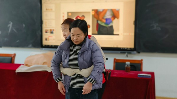 互动实操环节更是将培训氛围推向高潮。在吴春华讲师的悉心指导下,师生们分组上台,利用模拟人教具亲身体验心肺复苏按压与人工呼吸操作。“双手交叠,垂直向下按压,力度要适中,不能太轻也不能太重。”“人工呼吸时要捏住伤者鼻子,确保气道通畅。”吴春华逐一对师生的动作进行纠正,手把手传授操作技巧。在海姆立克急救法演示中,她通过趣味口诀帮助大家快速记忆操作要领,让抽象的急救知识变得简单易懂、易于掌握。师生们踊跃参与、积极提问,在实践操作中切实提升了应急处置能力。