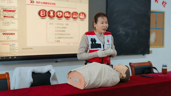 应急救护培训现场,驻马店市红十字会高级讲师吴春华以“守护生命 救在身边”为主题,用通俗易懂的语言和生动鲜活的案例,系统讲解应急救护知识。培训重点聚焦心肺复苏(CPR)和海姆立克急救法两大核心技能,吴春华针对成人、儿童、婴儿的生理差异,结合模拟人教具,逐一演示不同场景下的急救操作手法:从如何快速判断伤者意识、及时呼叫救援,到胸外按压的位置、深度、频率,再到开放气道、人工呼吸的关键要点,每一个步骤都讲解得清晰透彻、演示得规范标准。同时,她特别强调了救人过程中的注意事项,提醒大家在实施急救前要做好自我保护,确保急救操作的安全性和有效性。