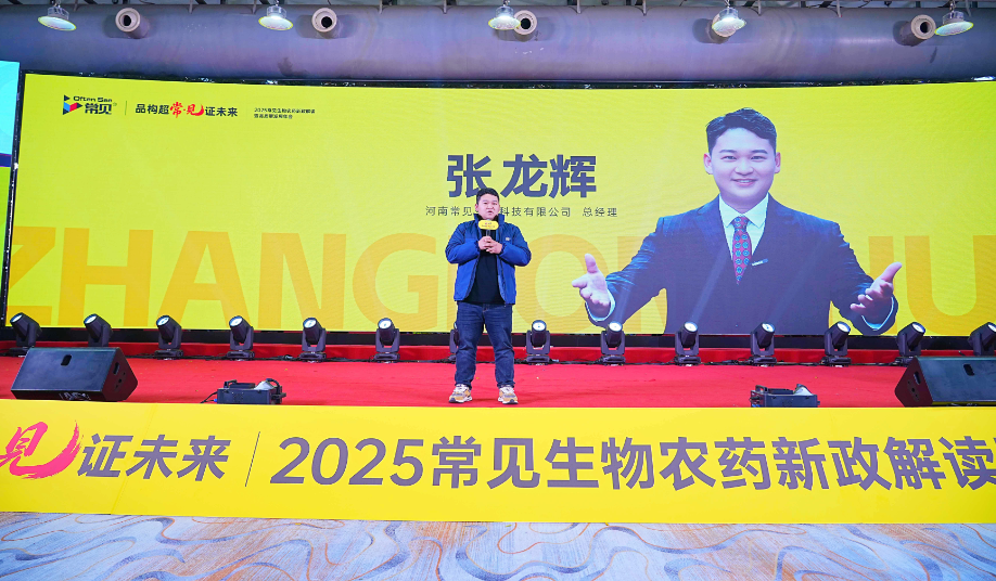 时值农资行业“一证一品”政策落地的关键转型期,12月7日,以“品构超常 见证未来”为主题的2025常见生物农药新政解读暨高质量发展年会在许昌花都温泉小镇召开。本次会议由河南常见生物科技有限公司(下称“常见生物”)主办,河南省农药管理协会秘书长王全德、海南大学化学化工学院副院长李嘉诚受邀出席,常见生物董事长张体东、总经理张龙辉及党支部书记、副总经理吕阅兵和来自全国各地的1000余名经销商代表齐聚一堂,共析政策风向,共探技术革新,共话行业高质量发展新路径。