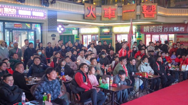 当晚,尽管冬意渐浓,但各转播现场气氛热烈。巨型屏幕前座无虚席,球迷身穿红色球衣,挥舞旗帜,每一次的进攻与防守都引来球迷的掌声与呐喊。啤酒、小吃、助威棒以及主办方完善的配套服务让街区瞬间化为沉浸式露天球迷广场。
