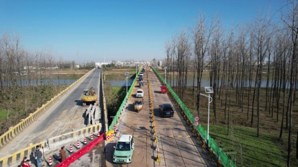 该工程总投资3.78亿元,全长2750米,桥面宽度24米,按Ⅲ级航道标准设计,主桥采用独塔斜拉桥结构,通航孔跨径155米,可满足千吨级船舶单孔双向通航需求。作为淮河淮滨段航道提升工程的重要组成部分,目前项目已完成保通栈桥搭建,老桥拆除和新桥施工同步推进,计划2028年中旬竣工。